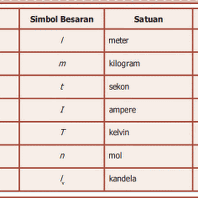 Besaran pokok dan besaran turunan digambarkan dalam tabel gambar di bawah ini.